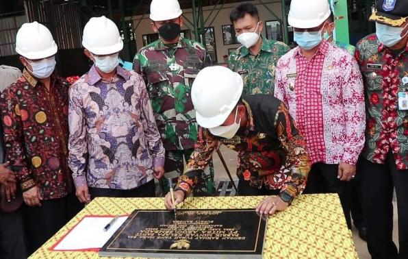 Puding Besar - Bupati Bangka, Mulkan SH MH, meresmikan pabrik kelapa sawit PT Mitra Agra Sembada (MAS), Jum'at (05/03/2021) di Desa Labu, Kecamatan Puding Besar. Pada penyampaiannya kali ini, Mulkan berharap adanya iklim investasi yang terus terjadi secara berkelanjutan di Kabupaten Bangka.