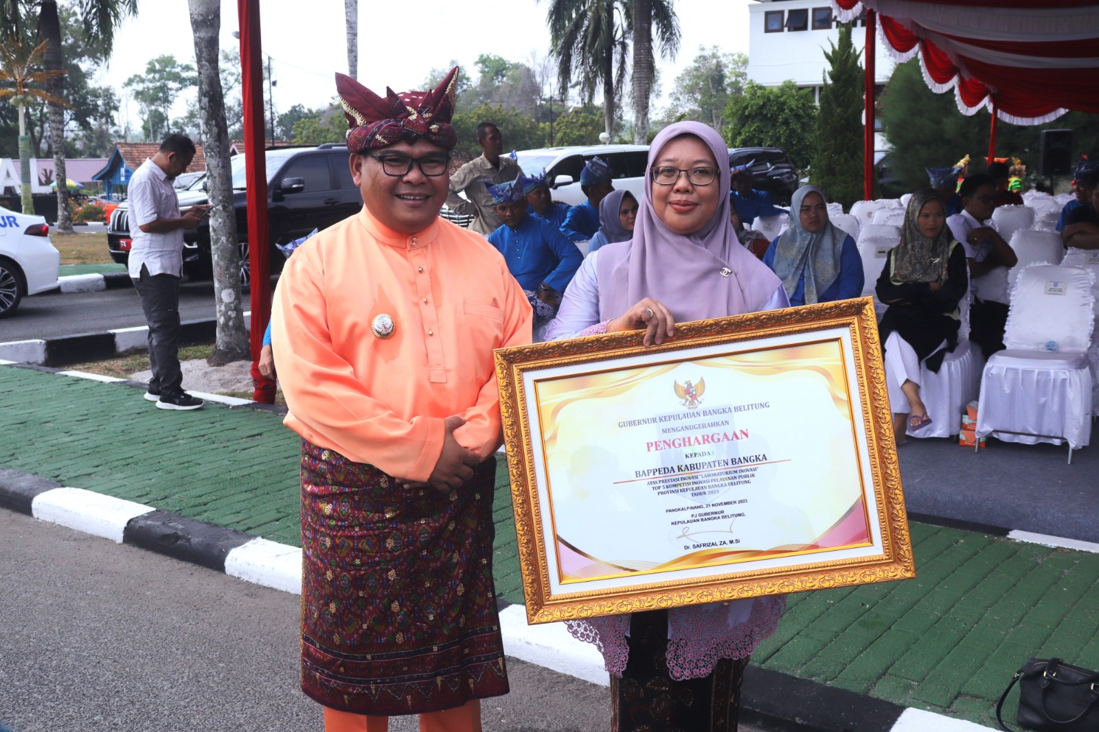 PJ Gubernur Babel Serahkan Penghargaan Nasional Kepada Kabupaten Bangka di Perayaan HUT Babel ke 23